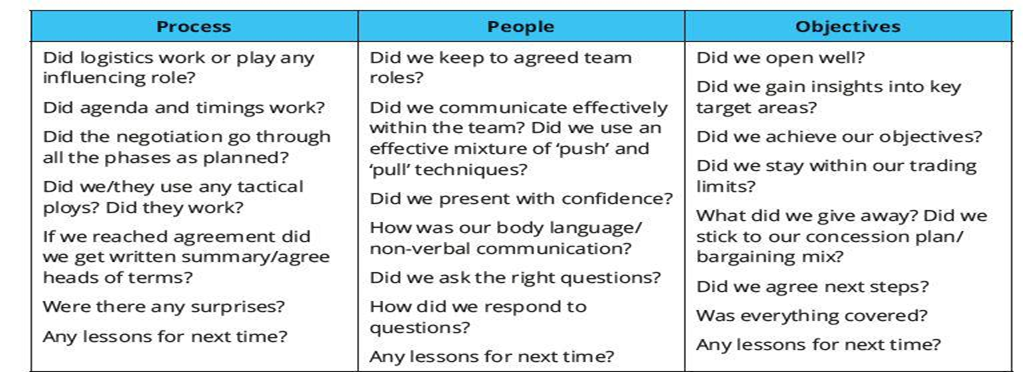 • There is still a benefit in reflecting on the negotiation and considering valuable lessons learned